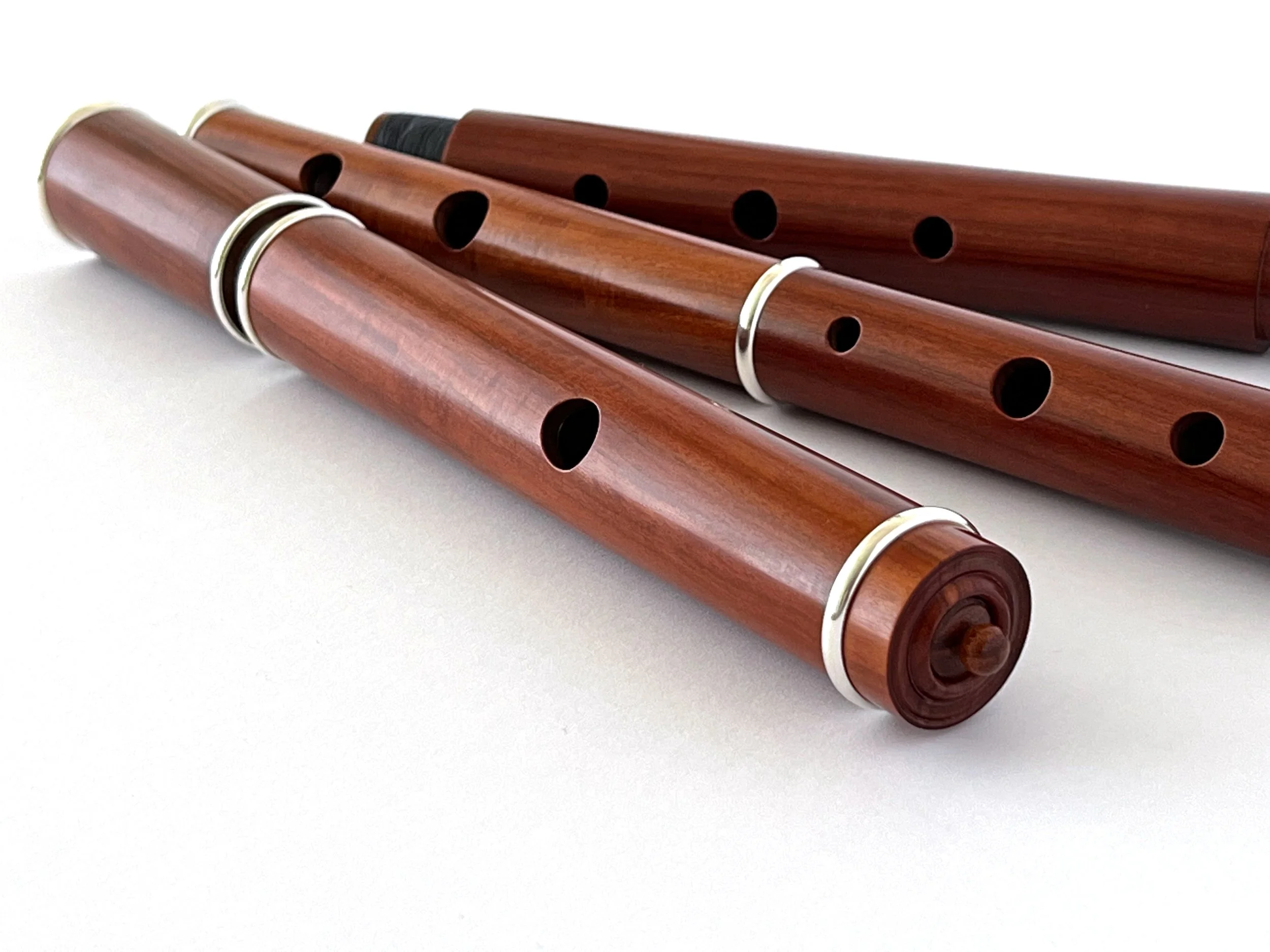 Playing in is an extremely important part of the process to ensure the flute’s longevity and can’t be emphasised enough. If it isn’t done correctly the flute can be seriously damaged and never recover from the problems that overplaying have brought about. Too much playing too early in the life of the flute can result in serious swelling around the flute joints, almost certainly changing the dimensions of the bore and altering the flute’s playing characteristics for ever. The timber the flute is made from is dried in a special dehumidified room to optimum moisture content although this won’t be the final moisture content of the flute. This is dependent on the amount of playing that the flute gets and the climatic conditions it is kept and played in and therefore it is vital that the acclimatisation process is a gradual one. Although your flute has had quite a lot of playing during its making, it still should be played in carefully. It will take up an hour a day for the first week and then you can increase the playing time by ten minutes per day until it reaches your maximum playing time. There can be a slight variation to these times eg an extra ten or fifteen minutes occasionally won’t hurt the flute, but done consecutively day after day it has the ability to harm the instrument irreparably. It’s very tempting when you first receive your flute to sit down and play it for a couple of hours, but this is the worst possible thing you can do for the instrument. Long playing sessions early in the life of the flute are likely to cause serious harm, resulting in problems with swelling and cracking. A little care and patience at first will ensure your flute serves you well for many years. Overplaying can be detected easily by the maker and this will void any guarantees on the instrument.